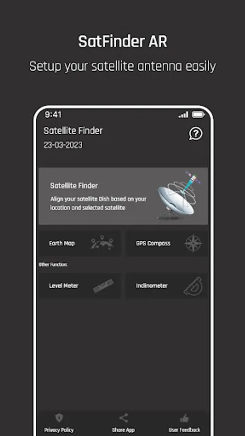 Easily set up TV dish antenna direct tv app with quick digital satfinder quick dish align satellite pointer according to the satellite position. It will give you accurate lnb azimuth and elevation value according to your location relates to GPS for proper setup of dish network satelital dish alignment. It also provides you bubble level meter and inclinometer for measuring angle of slope for proper tv dish antenna placement. Satellite dish setting is now on your fingertips using our Digital satfinder quick dish pointer application. Point your device towards the targeted dish parabola satellite from the list of available satellites. The sattelite dishpointer app freely directs the compass towards the satellite in correct direction in satellite tracking device for matching the frequency of all satellites. Set your device very precisely by reading the specific sat coordinates information: lnb, azimuth, elevation and polarization angles that are highly precise calculating information regarding specific satellite dish. This dish finders satellite director helps you align's your satellite dish based on your gps maps location address and selected satellite.