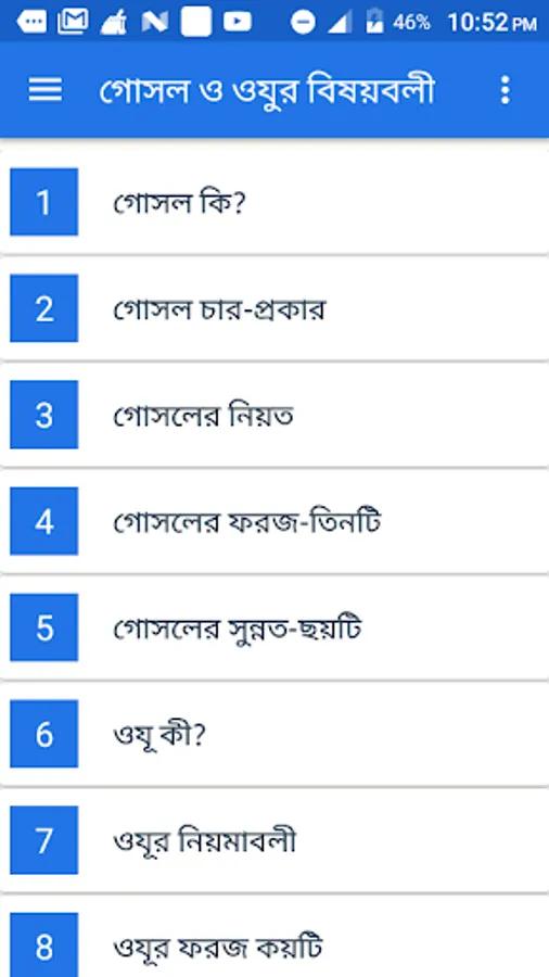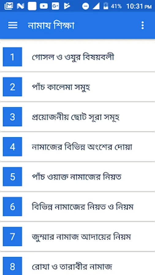 বাংলা নামাজ শিক্ষা অ্যাপ্লিকেশনটিতে যা যা আছে তা নিচে দেওয়া হলো-