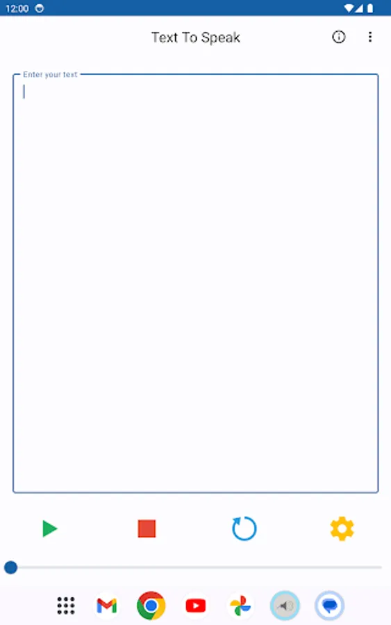 - Enter or past your text in the text area and press play button to hear the text voice.