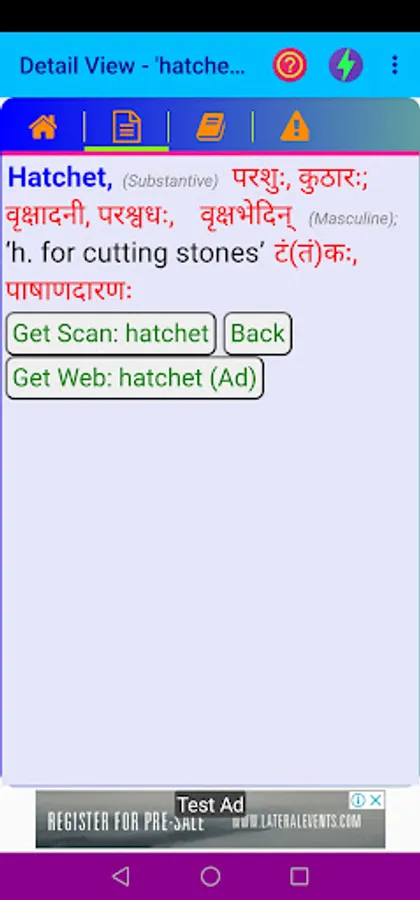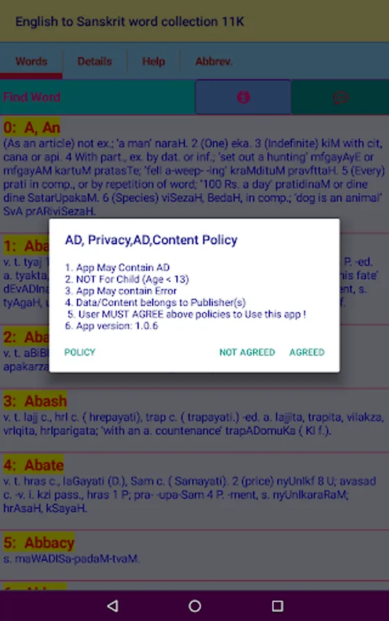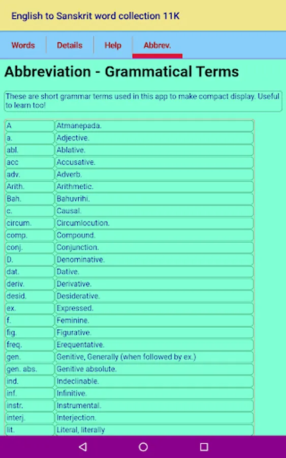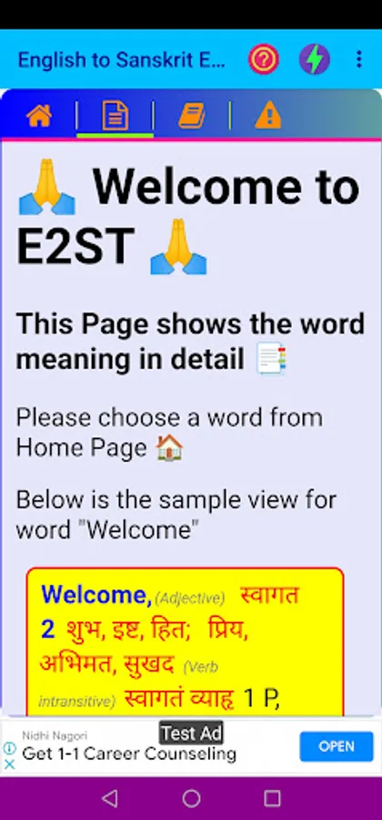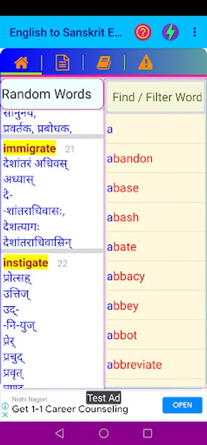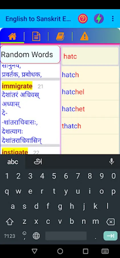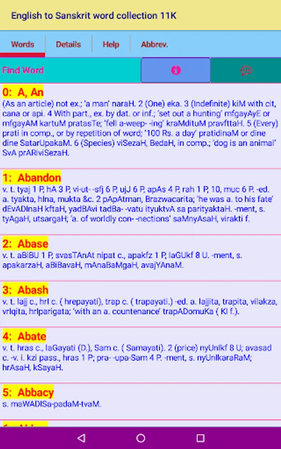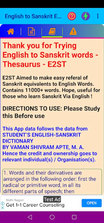 Credit(s): This App data follows the data digitized from STUDENT’S ENGLISH - SANSKRIT DICTIONARY BY VAMAN SHIVRAM APTE, M. A. Credit and ownership goes to relevant individual(s) / Organization(s).