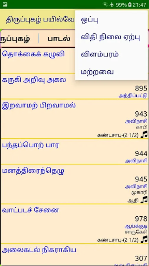 Upcoming versions 1.Please share the song to others 2. Word search will be featured!
