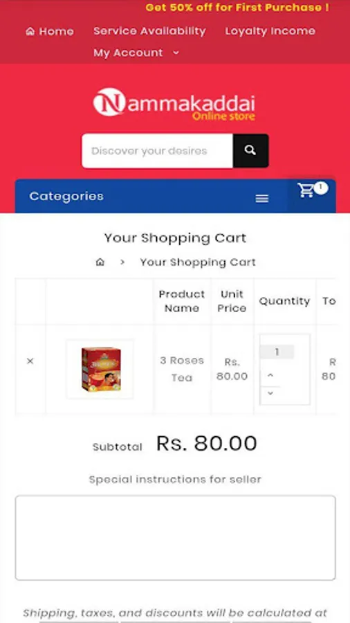 Nammakaddai online store is the only destination to purchase all your necessities like Grocery items, Vegetables, Diet Foods, Fast Foods, Fashion Wear, and more online at huge discounts, deals, and amazing offers. We deliver your orders doorstep on-time. Our online store is user-friendly and has something for everyone's desire.