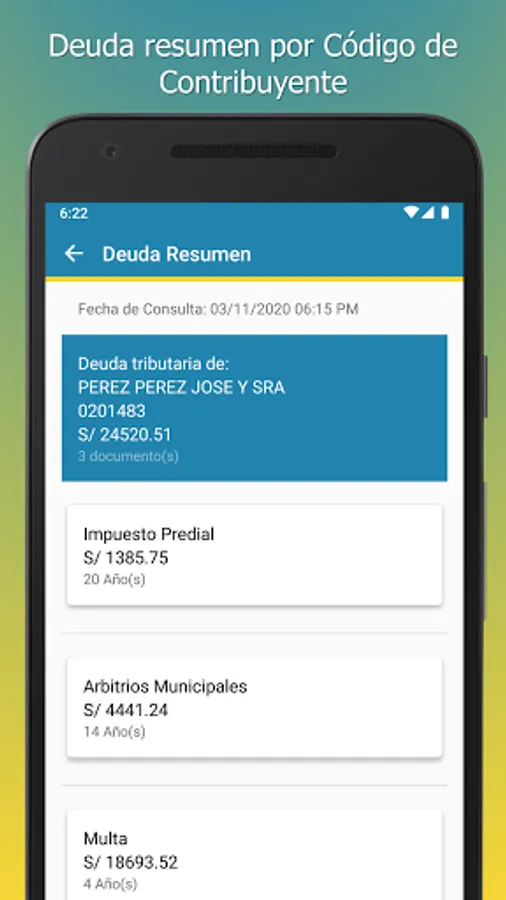- Consulta de Deuda Tributaria (Impuesto Predial, Impuesto Vehicular y Arbitrios Municipales) pendientes de pago.