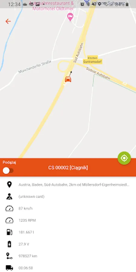 - presentation of the current vehicle position on the map and vehicle operating parameters in real time,