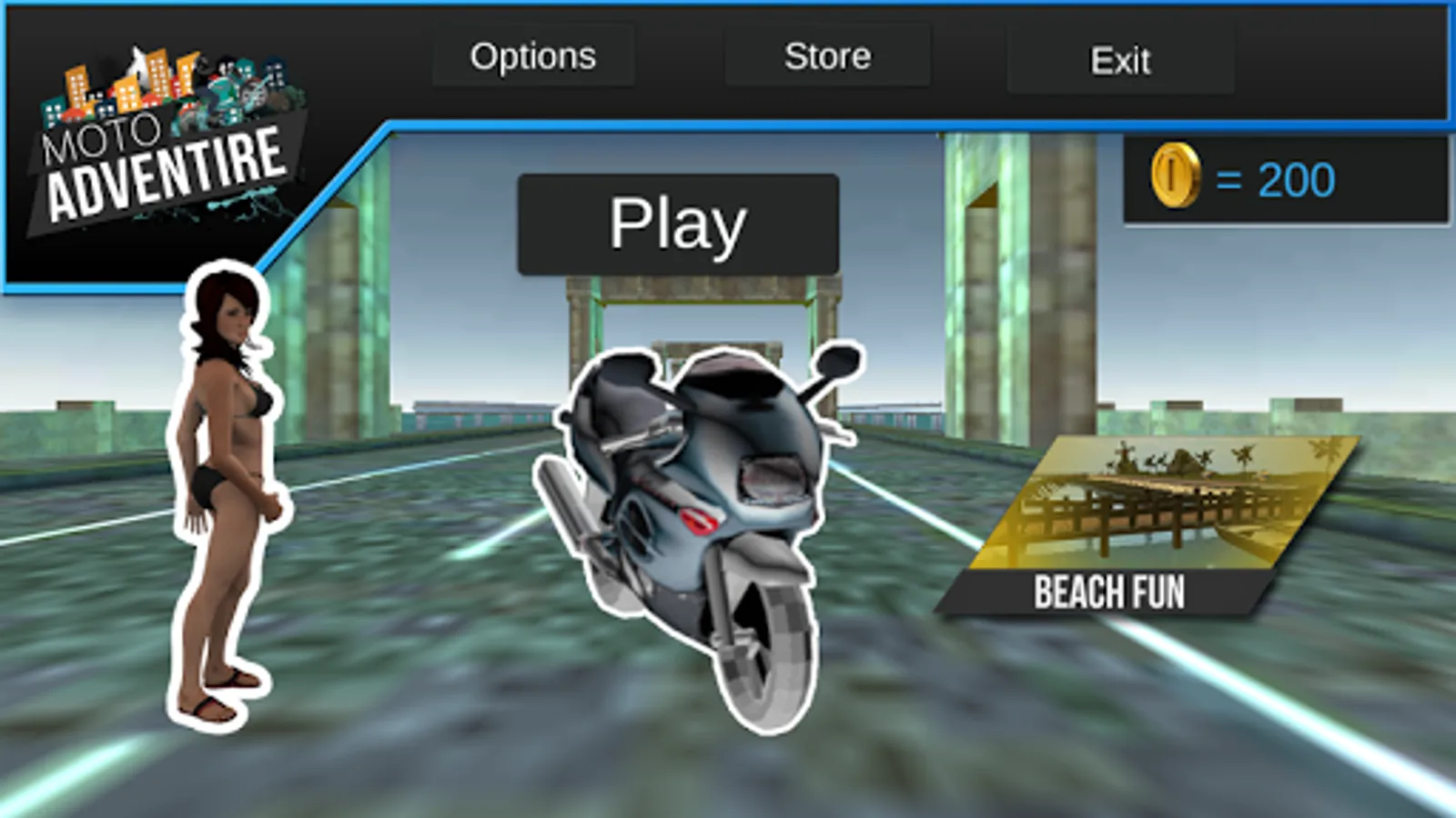 Moto Adventure takes the endless racing type, to a whole new level by adding a third person view perspective, good graphics and real life recorded bike sounds.