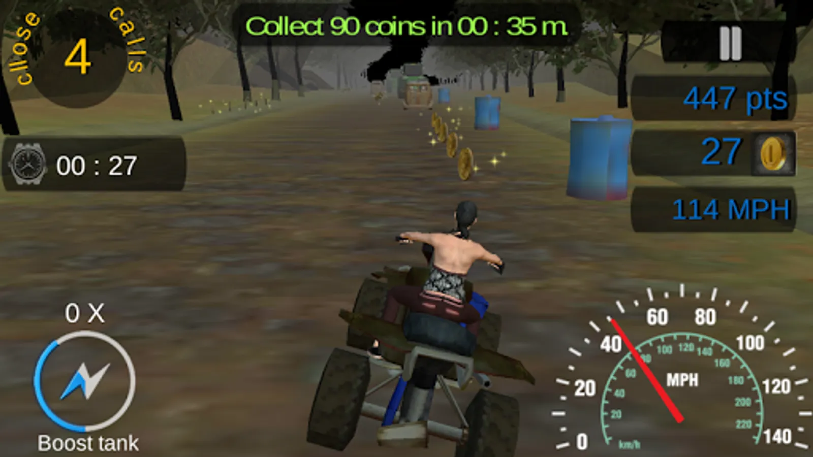 In Moto Adventure, being daring and passing close to the cars and trucks increases the speed of your bike and your score as well.