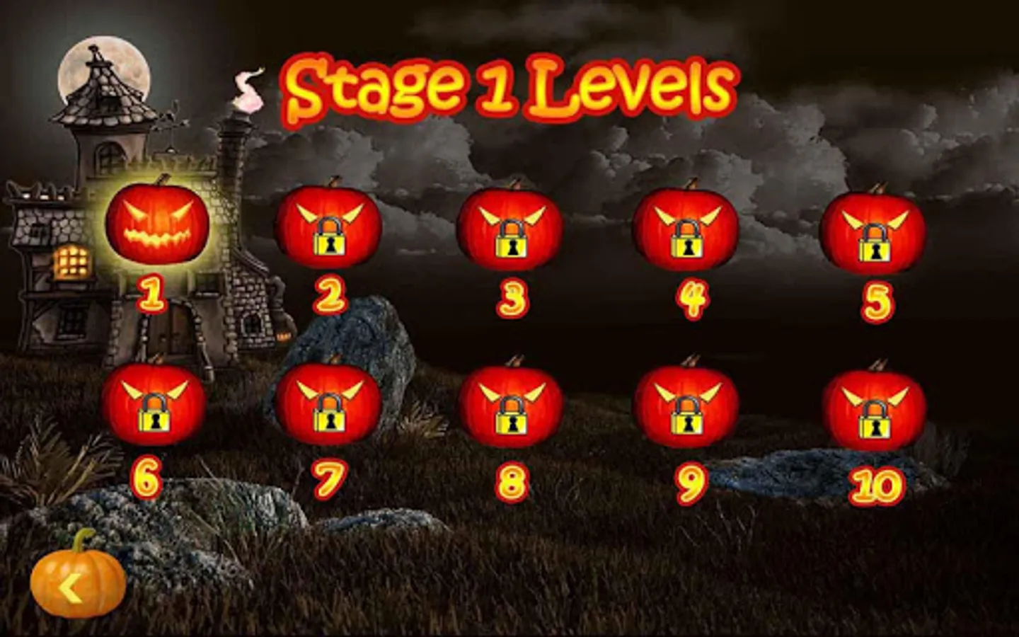 It’s a simple fun game that will have your eyes rolling here & there just to smack those pumpkins coming randomly out of different holes. You’ll be given a set time to smack those pumpkins. ‘Pumpkin Left’ will display on your screen showing the remaining pumpkins. Once all pumpkins smacked, you can move onto the next level. There are 5 stages and 50 levels in total. With each level, the set time decreases raising the level of difficulty and making the game more entertaining.
