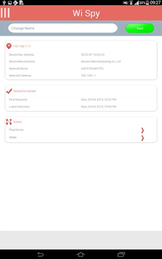 The most important feature of this app is that it shows you details of other devices that are connected to the same network as yours. The device scan algorithm of Wi Spy is very fast and efficient and it has the ability to save the previous connected devices history.