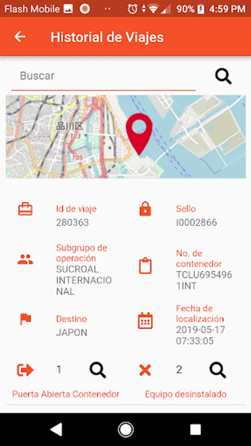 3. Validar el estado de la unidad internacional instalada sobre el contenedor del viaje.