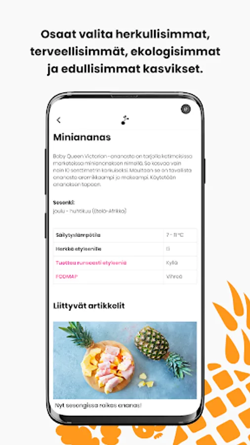 Ideally, the vegetable will come directly from the field to the table without intermediate storage. In addition to taste, storage reduces the nutrient content of vegetables. Most vegetables develop nutrients until they are picked. Vegetables picked raw from the other side of the globe and delivered to Finland thus contain considerably less nutrients than a freshly grown control brought directly to the dining table. Studies show that fruits that slowly grow and ripen on the plant are the healthiest.