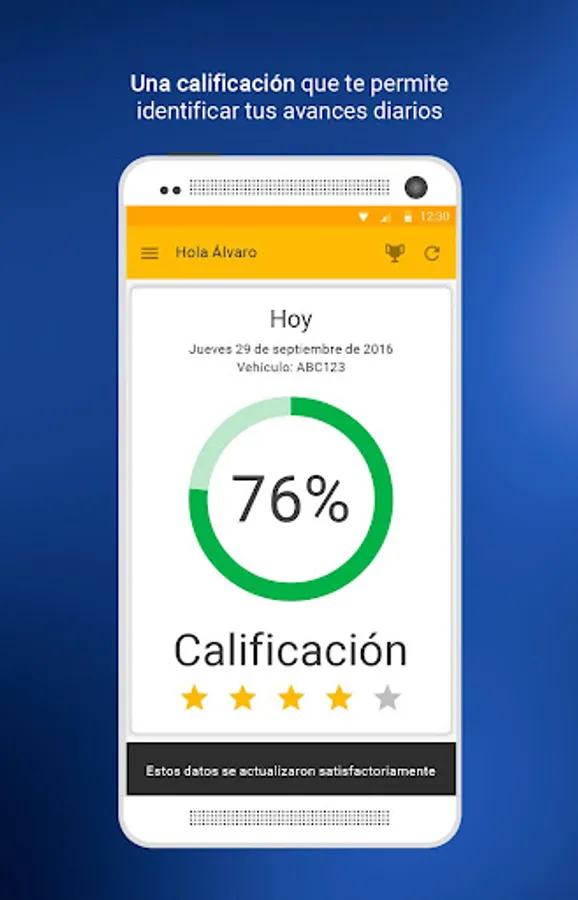 Satrack Drivers is the mobile application that allows you to receive your score on your cell phone and see how you are progressing until you reach first place.