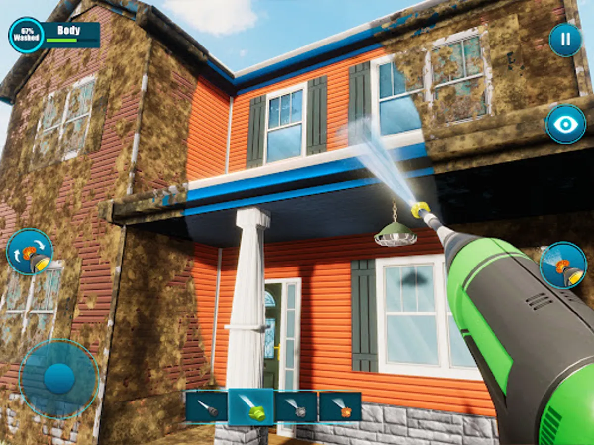 Have fun with multiple types of Power washer guns and washing nozzles, move around corners and enjoy exploring the house for a satisfying and wonderful anti stress relief relaxing experience of water sounds in house cleaning, car wash levels of 2022 modern power washing clean simulator games.