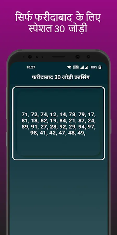 The lucky numbers given in the app are made from numerology and some number tricks. The numbers are set using the trick called Crossing of 36 numbers which is considered to be the most successful in the history of betting. Different 36 pair number sets are given for Faridabad, Ghaziabad, Gali and Disawar in the app, which will help you to guess yourself. You will get more passing average here than in other applications.