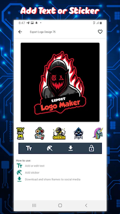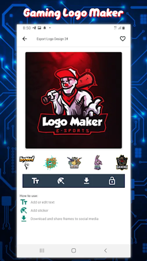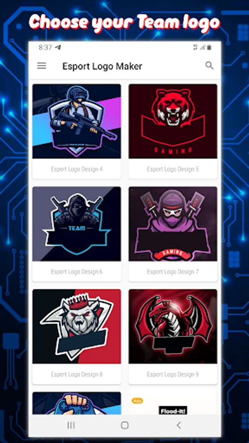 Create your team's esports logo with this App and create a unique identity for your esports team. Hundreds of free esport logo templates available, Easy to use and No design skills required. Browse our collection of great gaming logos, customize them in just minutes, and upload them.