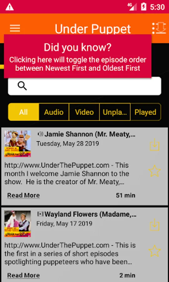 This is the most convenient way to access Under The Puppet on your phone. With this app you are always connected to the latest episodes and the show. Plus, get new episodes before their public release! You can also star your favorite episodes and save them to a list so you can easily enjoy them over and over! This app is complete access to Under The Puppet and if you're a fan of the show you won't want to be without it!