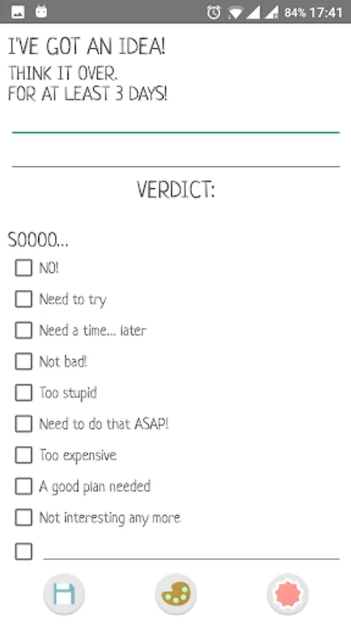 In this diary you can store not only favorite texts but any images, emotions, pictures. All your information is stored under a password in safe. You can create about 29 different page types: Arts, photos. draw, day buget (with auto calculation), sings, books and many other.