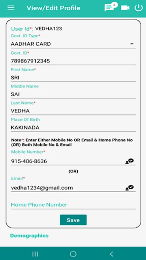 An individual can maintain his demographics and health profile and once they are entered, providers can view this data on his visit to the hospital. The provider can also update the patient's health profile at any time.