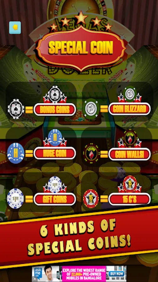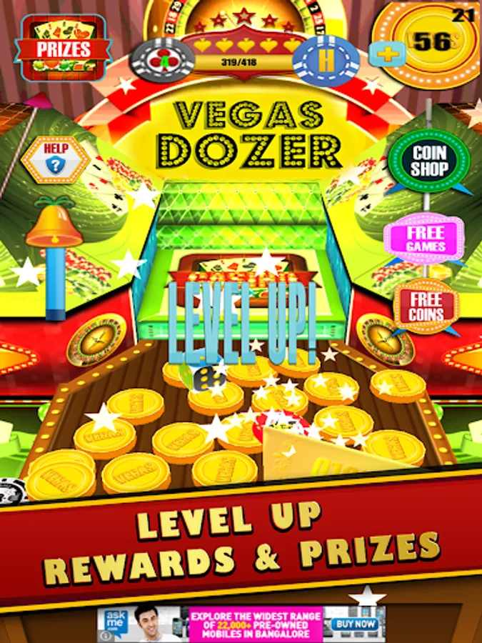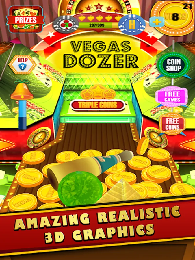 This dozer coin game is has a Las Vegas theme & is like a taking a virtual world tour of Las Vegas. You wont see any slot machine or slot dozer in the game, however lots of Awesome prizes will drop as you are playing the game: