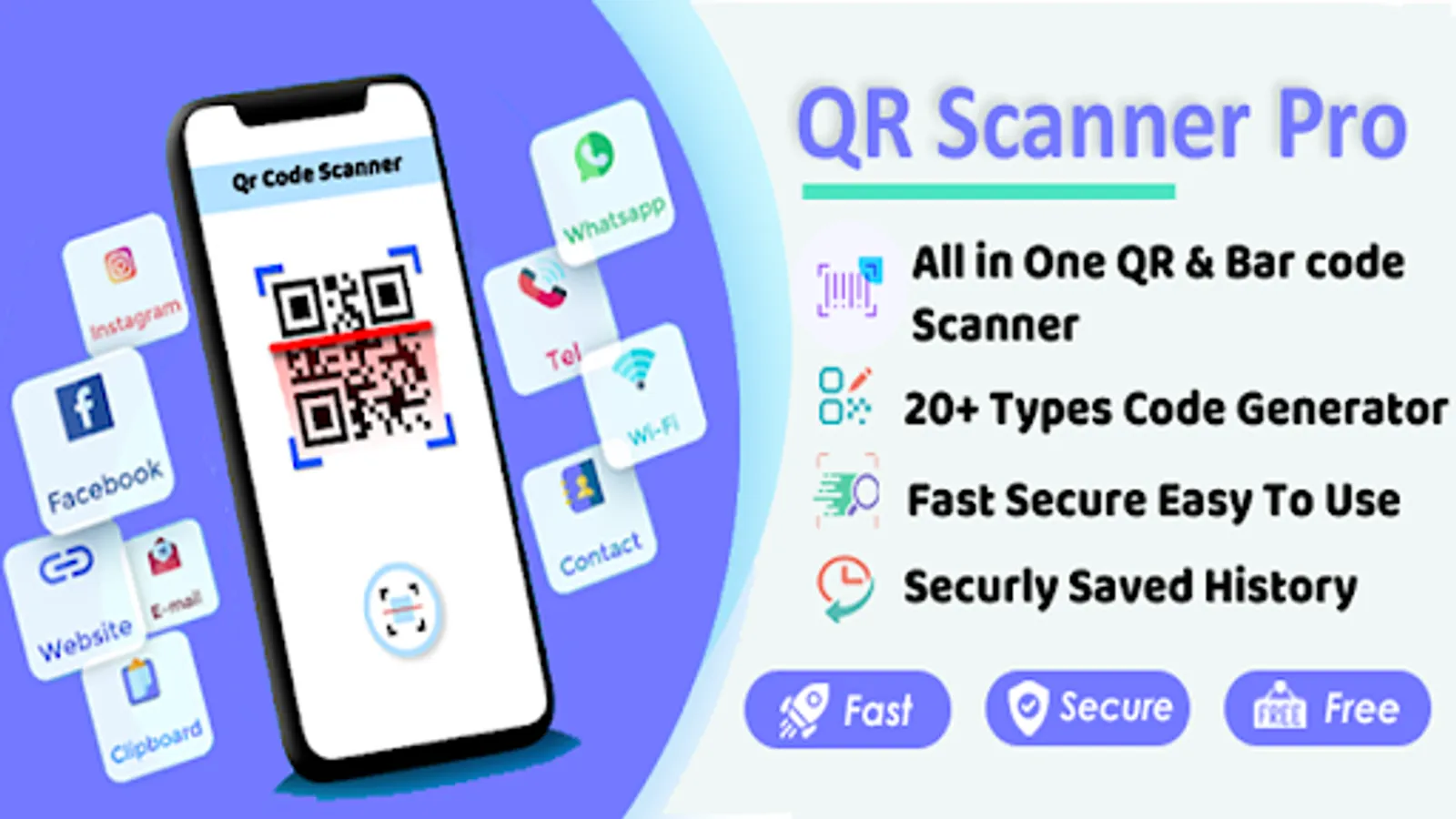 QR Code Scanner: Barcode Reader app can convert many information into QR codes, such as URL, Wi-Fi, Instagram, Facebook, WhatsApp, Twitter, Youtube, Spotify, PayPal, Viber, etc.