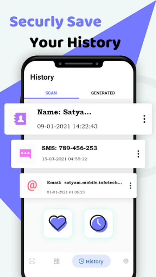 View all Qr code scan history and save and share with friends