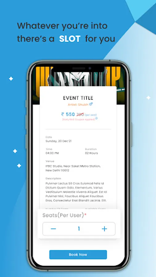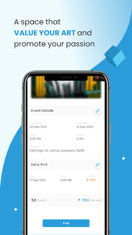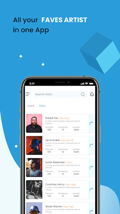 Any artist can organise a workshop with details about venue and timing and another artist can book workshop.