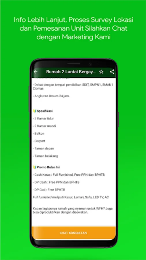 2️⃣ Mau survey lokasi, cukup chat marketing via aplikasi, Anda akan dipandu menemukan properti idaman Anda