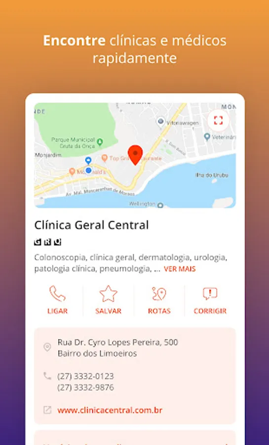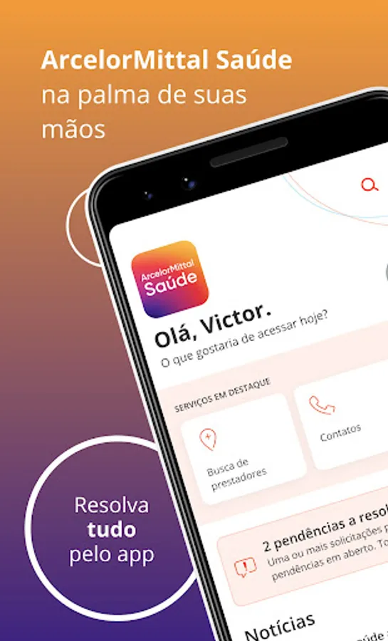 ArcelorMittal Saúde, has a simple and intuitive interface, identifies doctors, clinics, laboratories, hospitals and other health establishments closest to you, by location, type of provider, specialty, type of plan or by the name of the professional, or establishment of health, using the device's geolocation system.