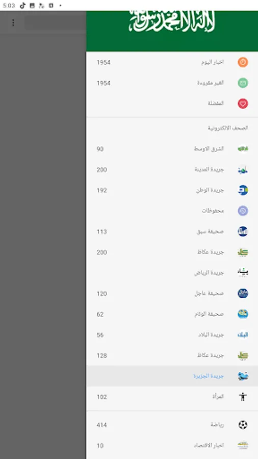 The application includes many sources, on top of which are newspapers and channels from Sabq newspapers, Riyadh newspapers, Al-Watan newspapers, emergency newspapers, Al-Madina newspapers, Okaz newspapers, Al-Arabiya TV, and other powerful news applications from the Arab world. and Saudi Arabia.
