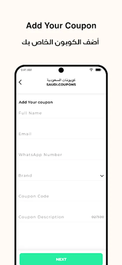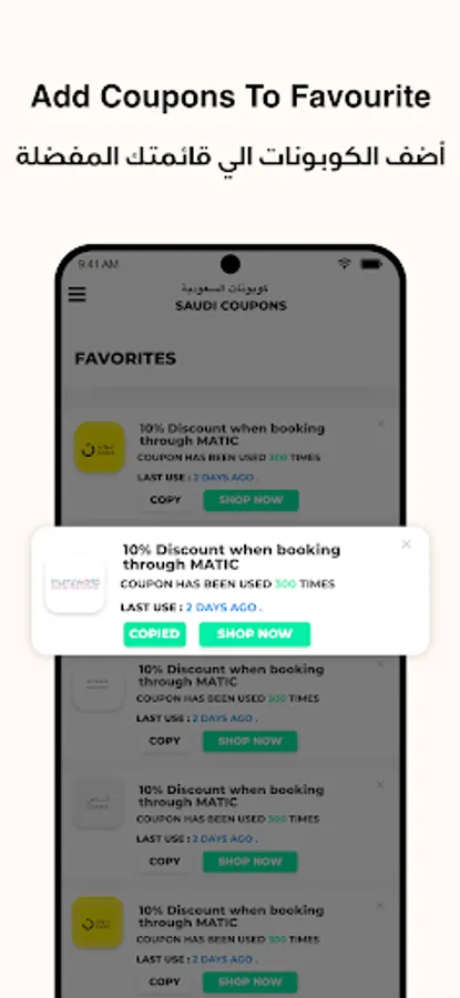 - يمكنك إضافة كوبونك إلى التطبيق.