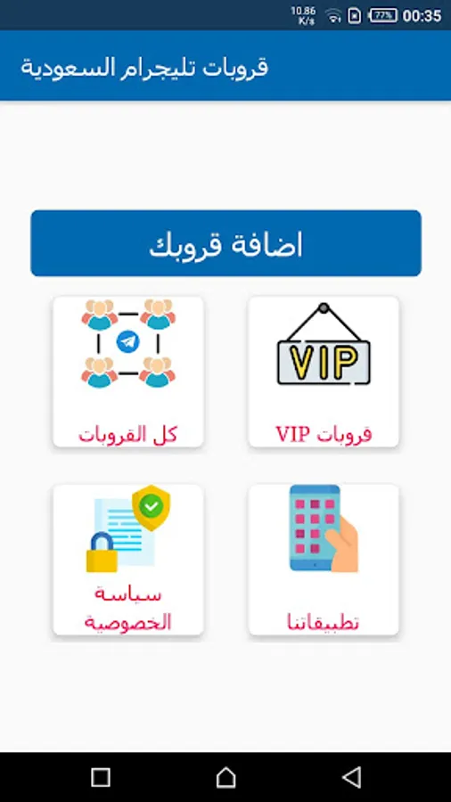 Our program is characterized by browsing Saudi groups only, and no user outside Saudi Arabia can browse groups and add them.