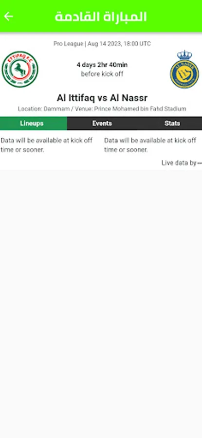 1. Displaying the results of the matches: The application displays the results of the recent matches of Al-Ettifaq Club in a quick and simple way. This enables fans to know the results of matches without having to search for them.