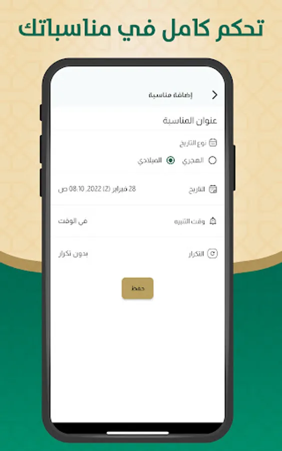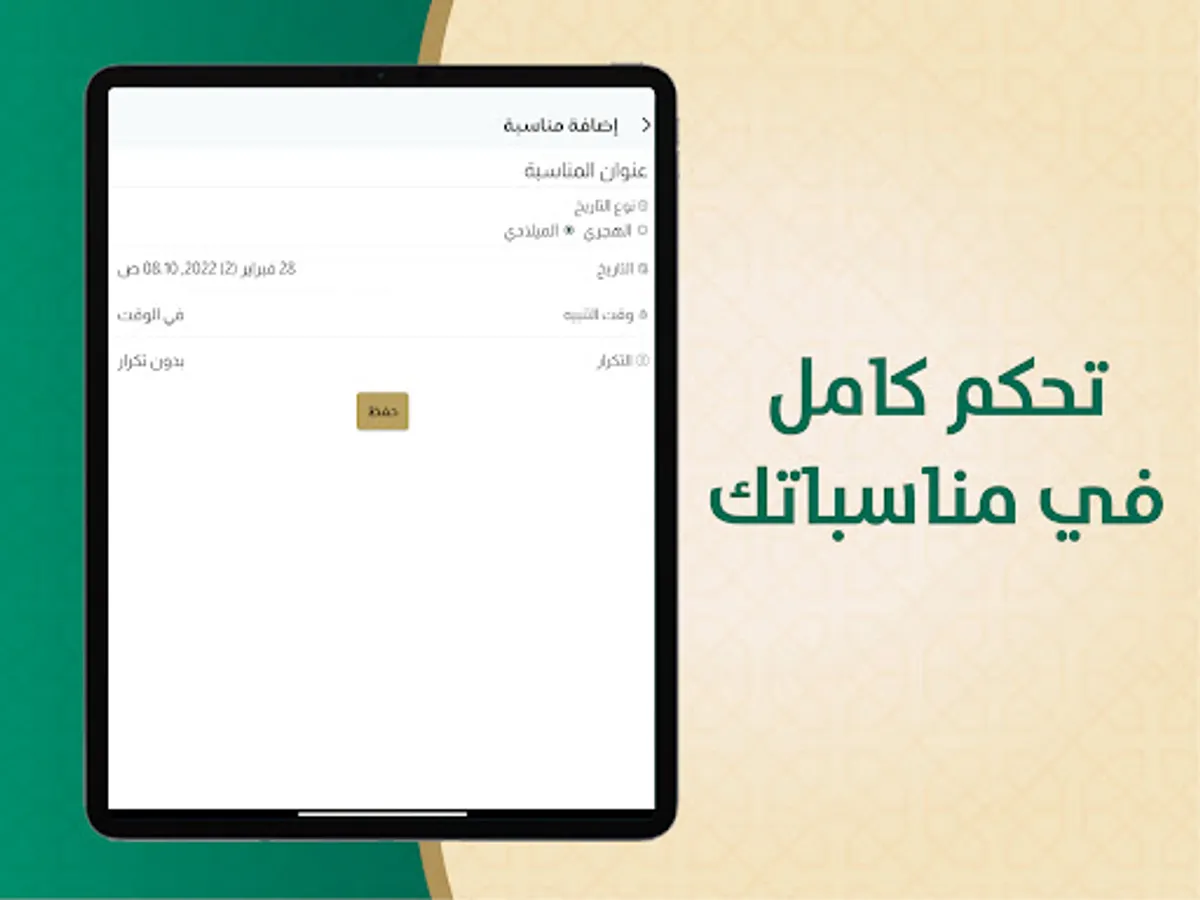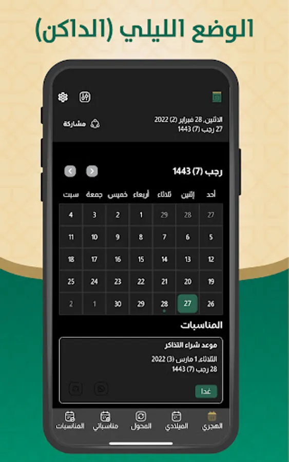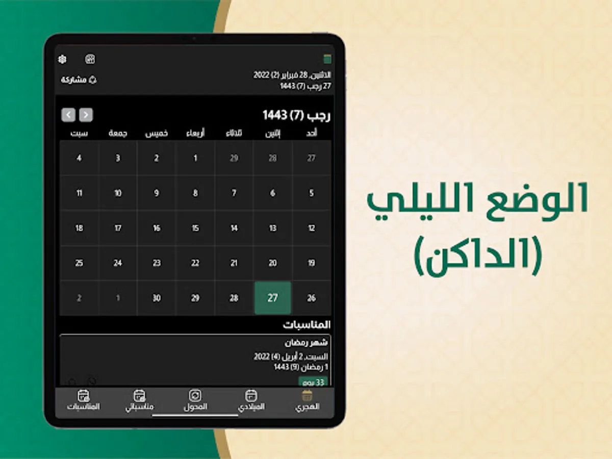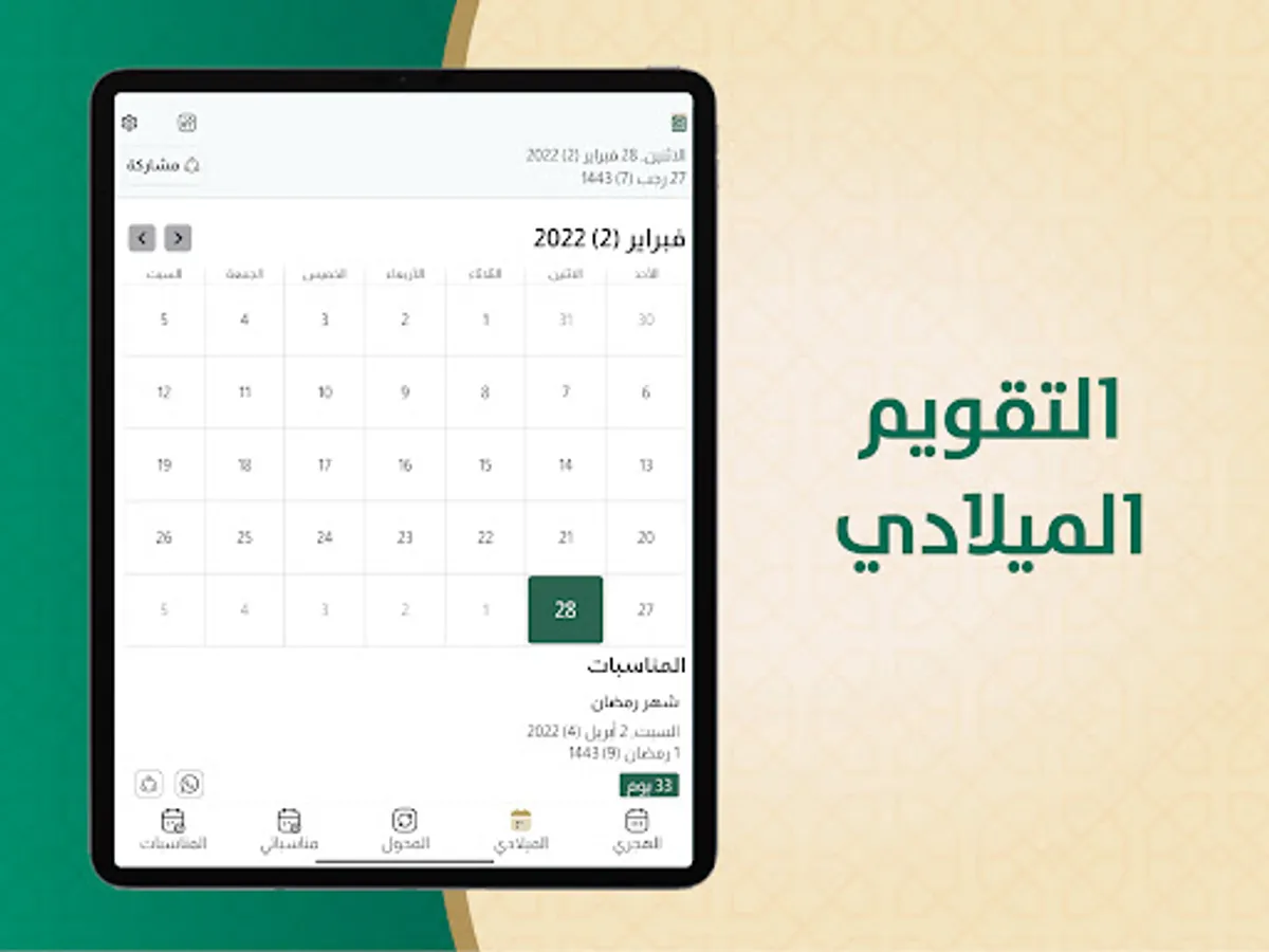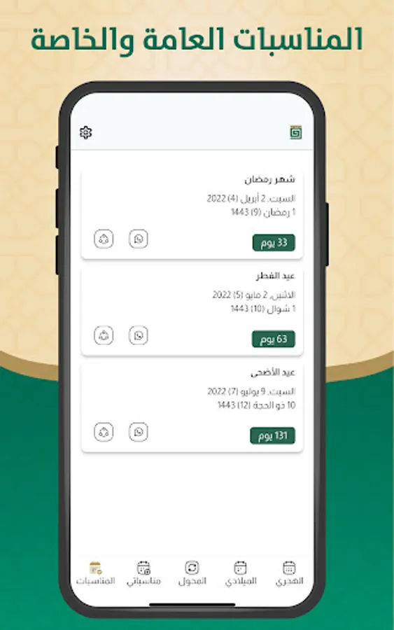 The Hijri and Gregorian calendar application displays: