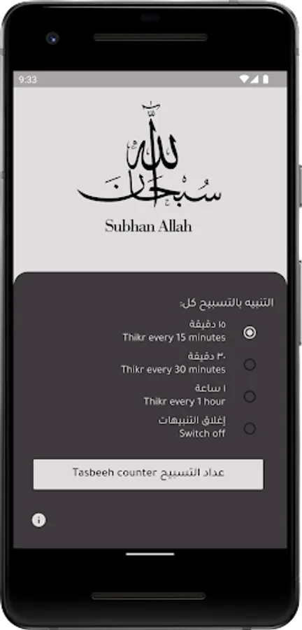 And the application’s trick is to play a quiet audio alert that does not cause disturbance or embarrassment, and does not exceed one second, during which the dhikr is pronounced every quarter of an hour or more.