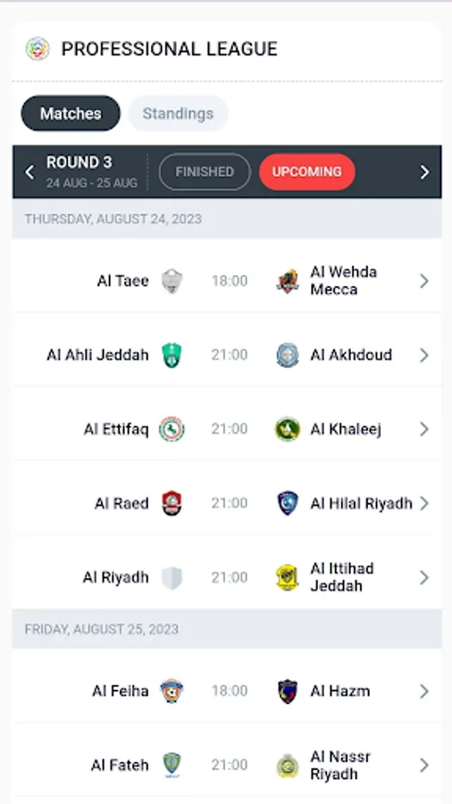 Welcome to Saudi League ScoreZone, your ultimate companion for up-to-the-minute Saudi League match results, live scores, and comprehensive schedules. Immerse yourself in the heart of Saudi football action. Never miss a goal, assist, or thrilling moment on the pitch. Whether you're a devoted fan of the Saudi League or just curious about the teams, our app offers in-depth coverage, player stats, and team standings. Stay current with match results, fixtures, and schedules using our Saudi League Schedule Tracker. Experience the excitement of Saudi football with live soccer scores and timely updates. Download now and embrace the passion of the Saudi League