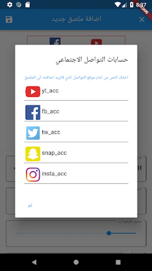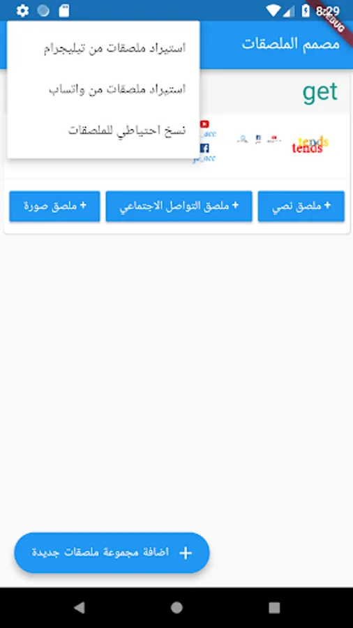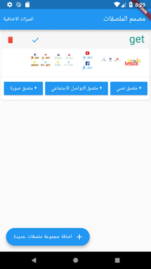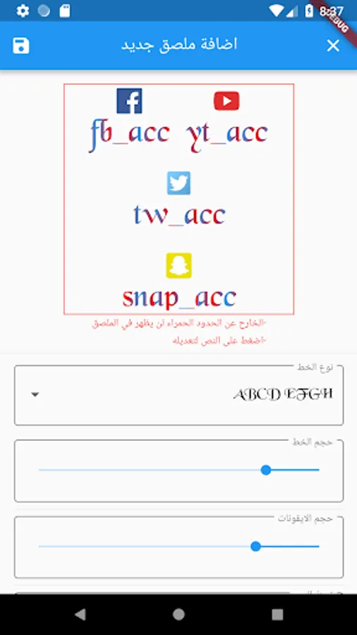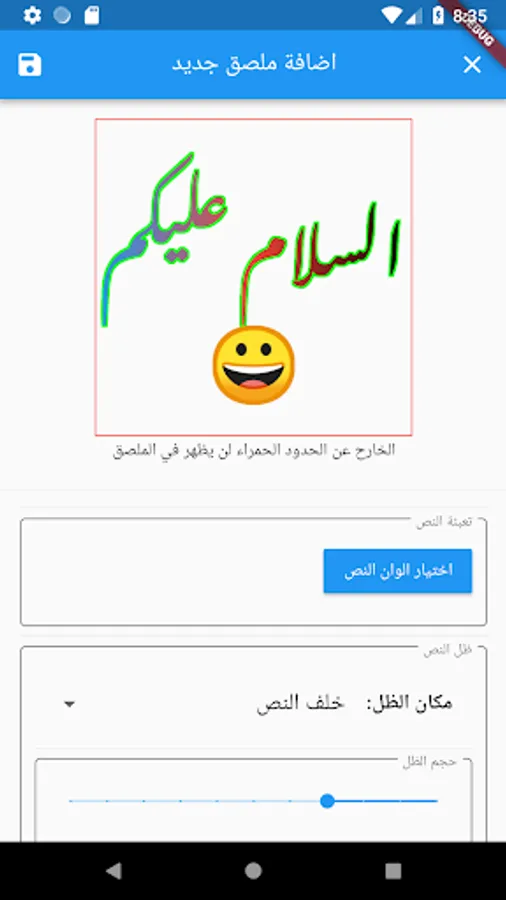 The sticker designer for WhatsApp enables the user to design professional text stickers with more than 100 Arabic fonts.