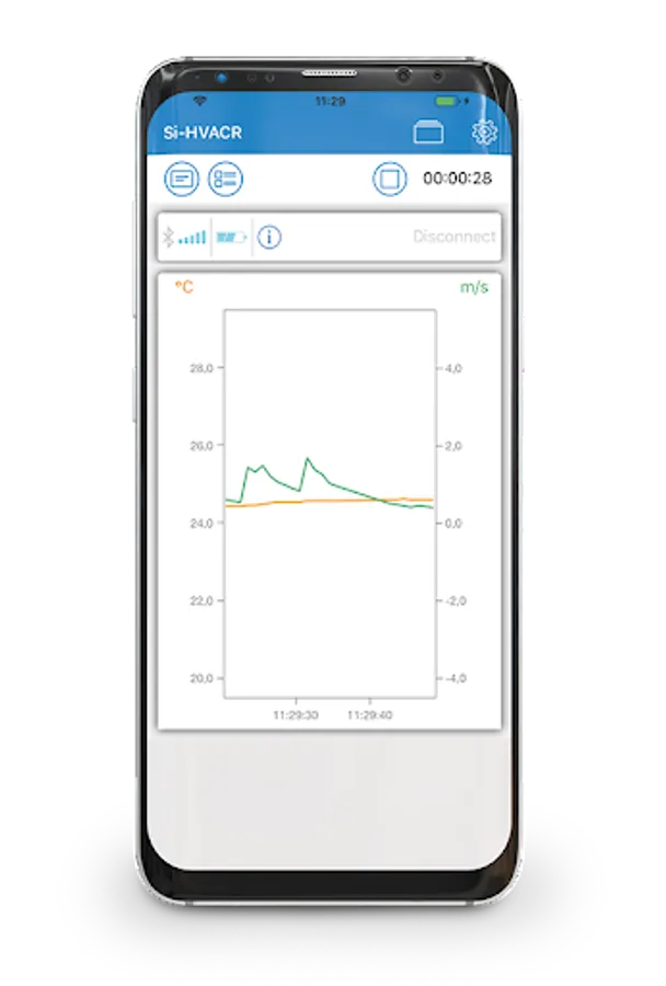 Si-HVACR Measurement MobileApp delivers a user-friendly experience for the Si-TT3 / Si-TI3 / Si-HH3 / Si-VV3 / Si-VH3 / Si-PM3 Sauermann instruments.