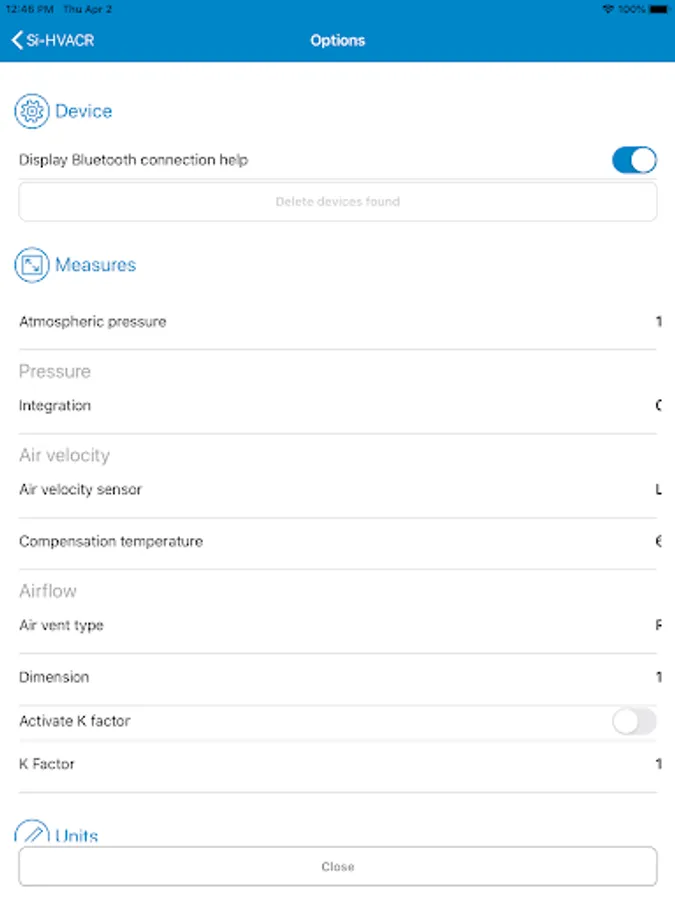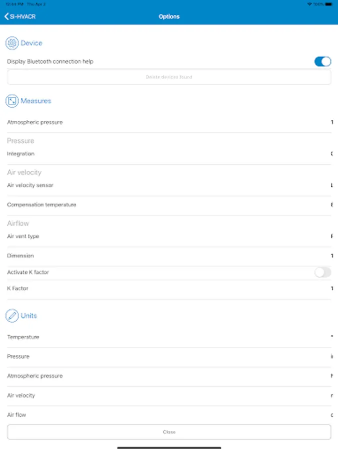 Si-HVACR Measurement MobileApp relays the following measurements: