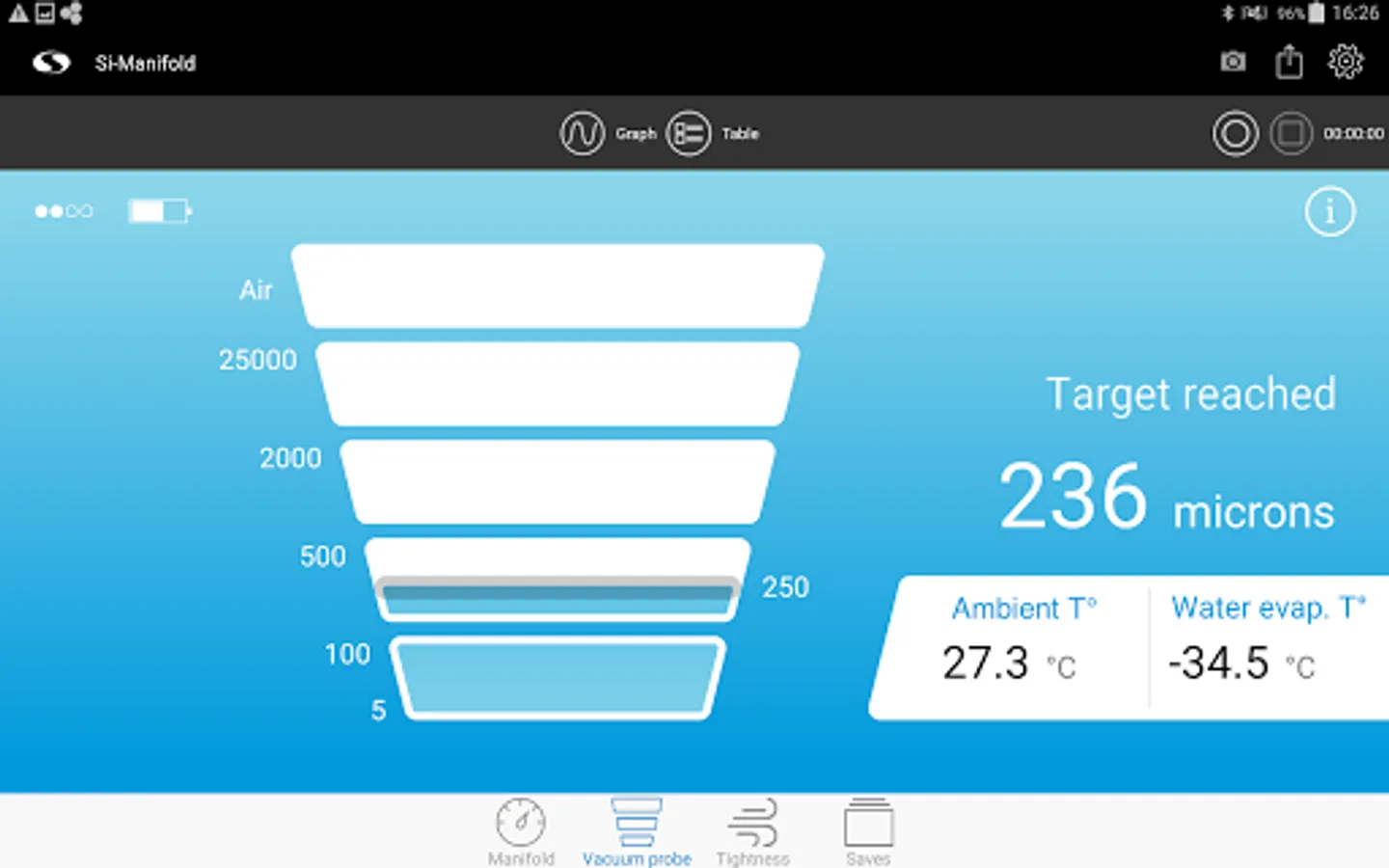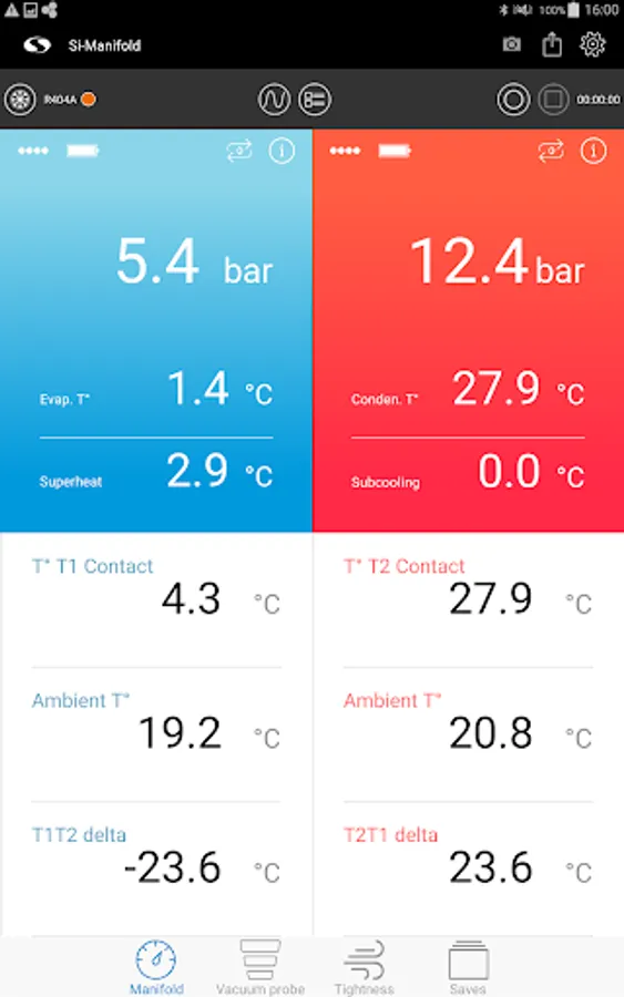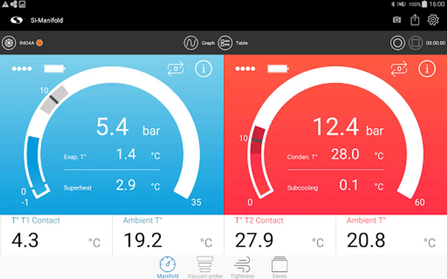 This App is used to instantly and accurately display numerous measurements, including pressure, temperature, etc., for the Si-RM3, Si-RM13, Si-RV3, and Si-RM1. It comes with long-range low-energy Bluetooth® 4.2 up to 30 meters (98 ft) and the ability to store and update approximately 120 refrigerants, including environmentally-friendly low global warming potential (GWP) and natural refrigerants.