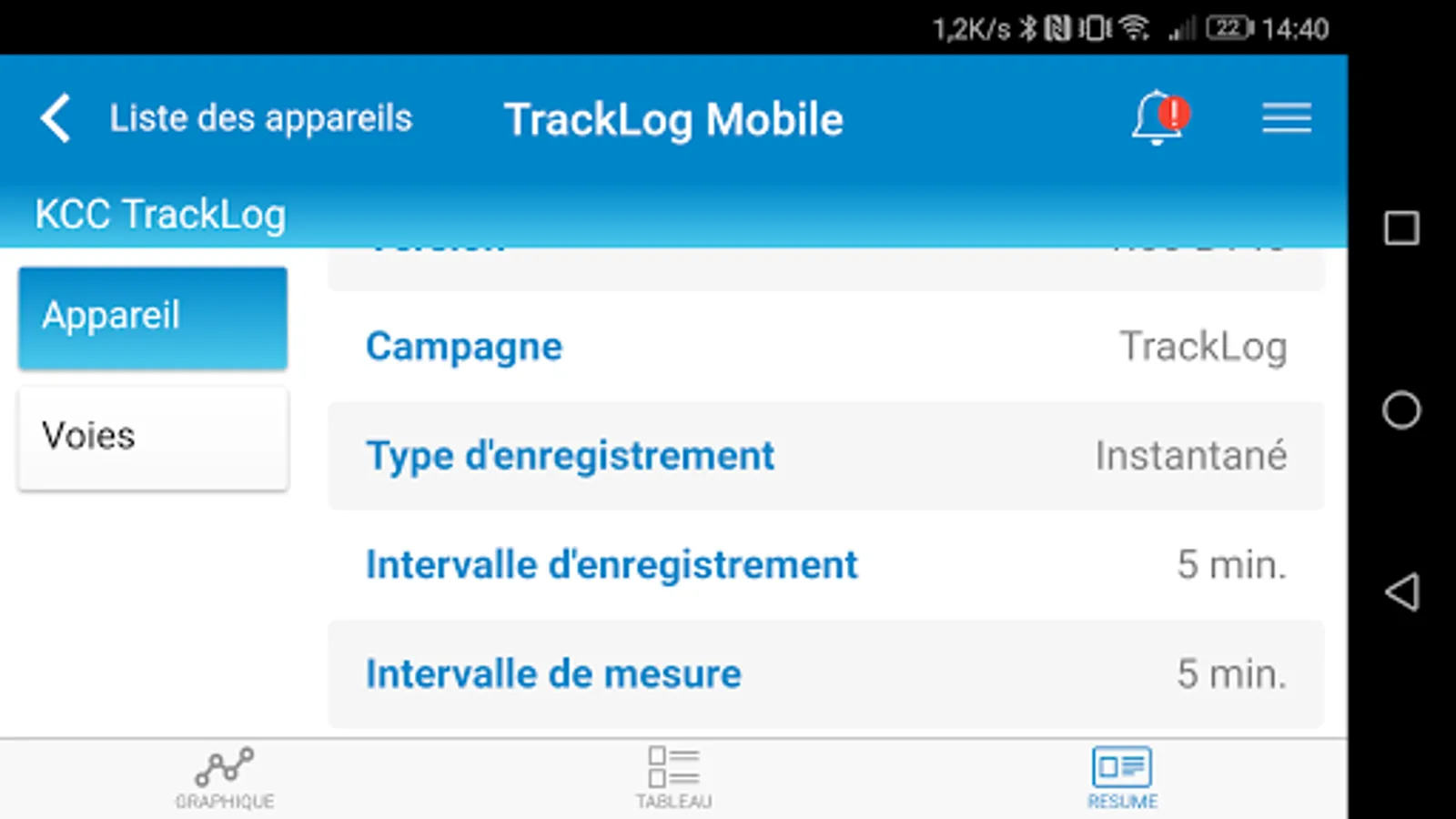 - View the data recorded by TrackLog devices as a graph and table