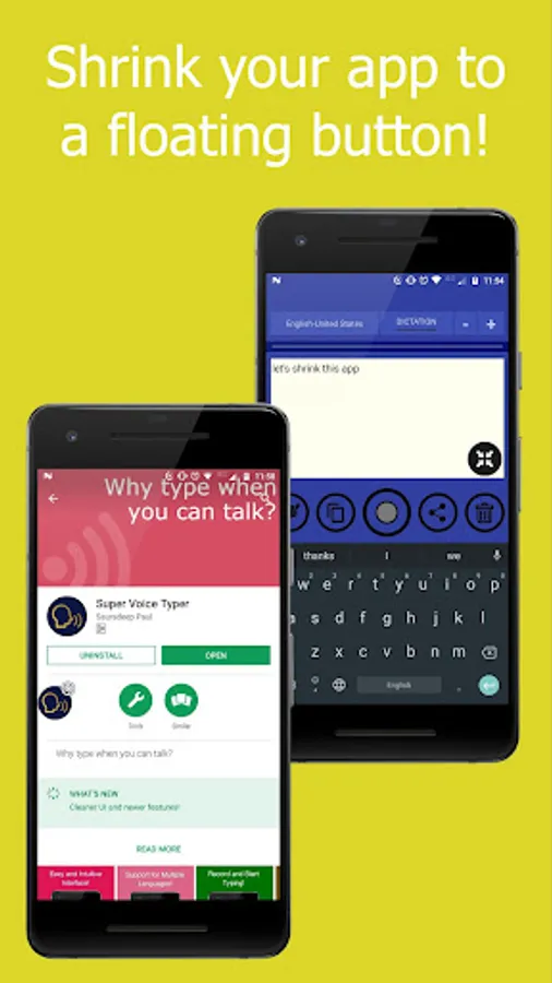 NOTE: Please accept the permission to record audio during the first app startup or change the permissions from Settings for the app to work. Also, please allow the system alert window permission to use the Shrink feature.
