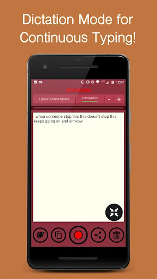 11. Turning on dictation mode will make the app listen to a sentence that you speak, type it and automatically start listening for the next sentence without you having to press the record button.
