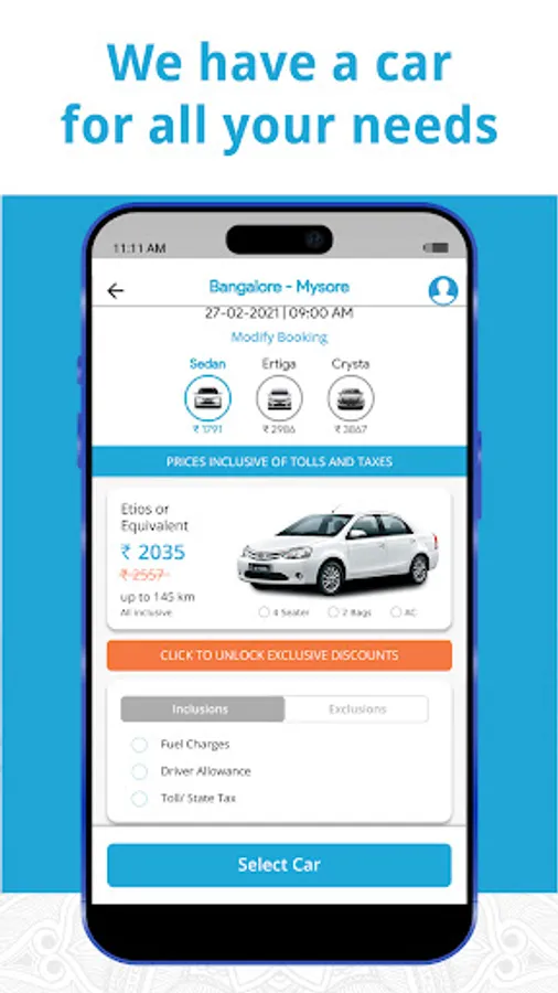 • Choose your vehicle : Hatchback or Sedan or SUVs.