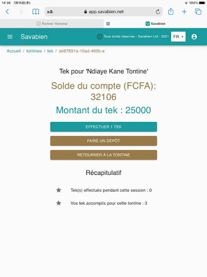 The Savabien platform is the only place where you can use your bankcard to directly make a deposit in any of the available mobile money wallets in Senegal, as well move your money from one wallet to another, all digitally, all online. It’s also the place where you create and manage all your tontines safely, privately, with absolute transparency and without the hassle.