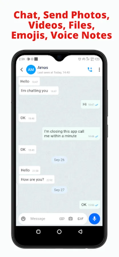 Chat, make voice calls, make video calls, send photos and videos, etc. as attachments, send voice notes, and many more easily for Free.