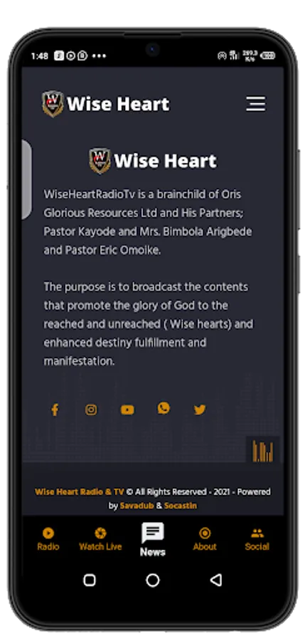 WiseHeart Radio & TV's purpose is to broadcast the contents that promote the glory of God to the reached and unreached ( Wise hearts) and enhanced destiny fulfillment and manifestation.