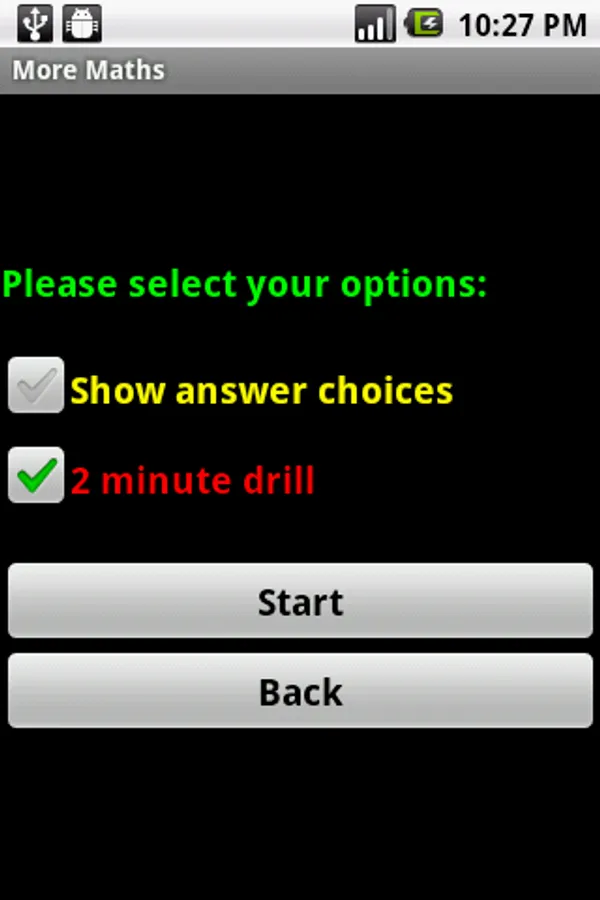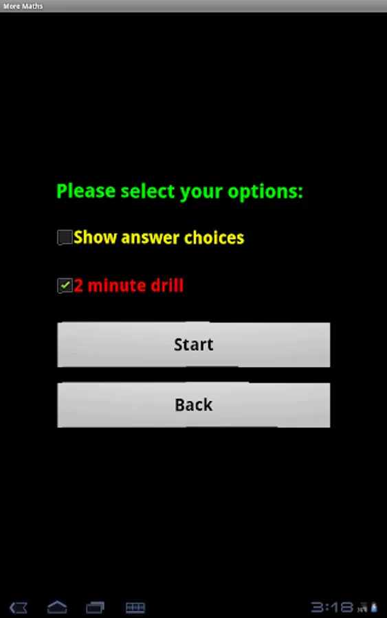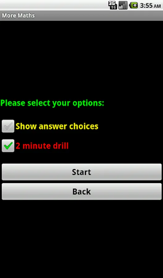 - “2 minute drill” lets you work for 2 minutes sessions. Session ends if 2 minutes passes or all your questions are asked, which ever happens first.