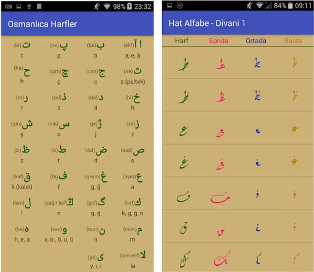 - The Ottoman Letters application lists the letters used in Ottoman Turkish and lists the words that start with that letter from the dictionary, with an explanation about the letters and different each time.