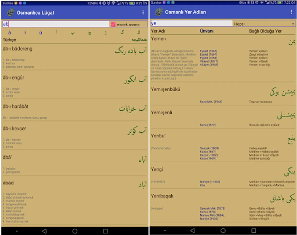 - The Ottoman Dictionary application allows you to search flexibly in the dictionary in both Turkish and Ottoman Turkish. The words in the dictionary are listed in the Dictionary List with explanations and allow operations such as copy and share from the Operations Menu.