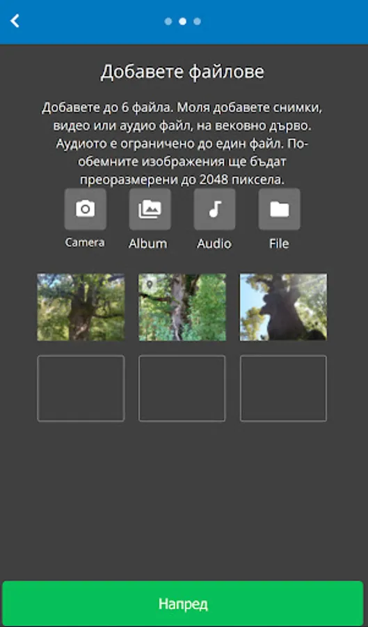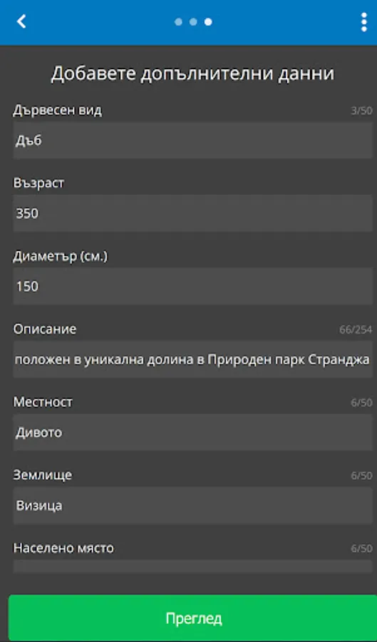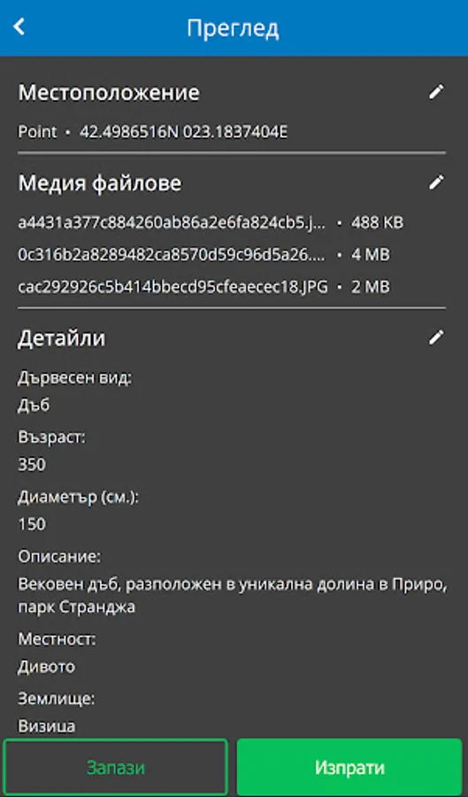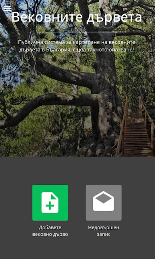 Mobile application for mapping centuries-old trees in Bulgaria.