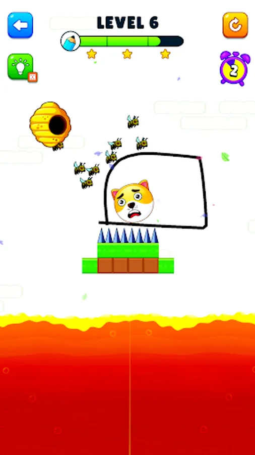 You must use your freehand drawing skills to save a dog from a swarm of bees in the entertaining and addicting brainteaser game dog rescue. Get ready to save the pets: doge rescue in this puzzle game. Draw to save the pets and dogs before the timer runs out, and try to get three stars on all levels. You can also play the save the dog game offline. This puzzle game will have you drawing to save the dog's life!